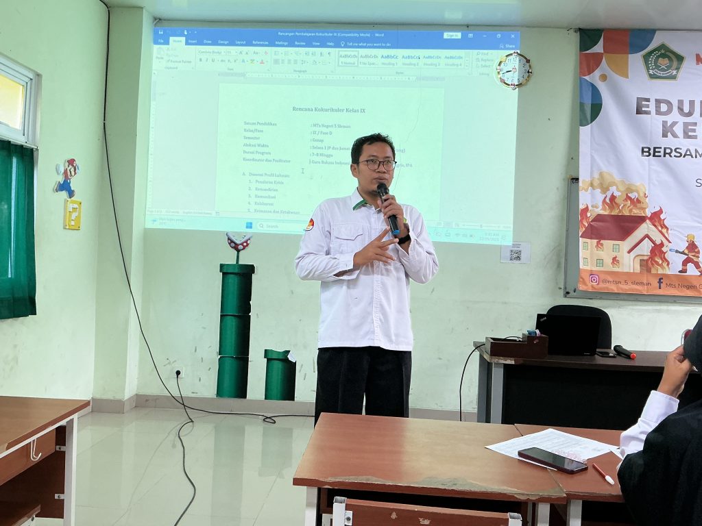 Selanjutnya, Pak Jabar menjelaskan secara rinci mengenai pelaksanaan kegiatan kokurikuler di MTsN 5 Sleman. Pada sesi ini, beliau juga membagi tugas kepada para guru untuk mengampu dan merancang berbagai kegiatan kokurikuler sesuai dengan mata pelajaran dan karakteristik peserta didik.