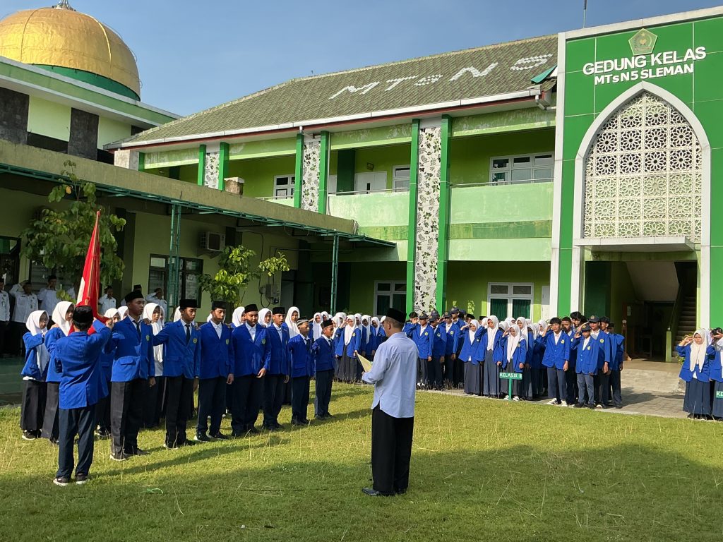 (Sleman — MTsN 5 Sleman) MTsN 5 Sleman menggelar Pelantikan Organisasi Siswa Intra Madrasah (OSIM) Masa Bakti 2026–2027, Senin, (26/01/2026). Kegiatan ini dilaksanakan di Lapangan Upacara MTsN 5 Sleman dan berlangsung dengan khidmat serta penuh makna.
